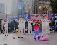 演出期间,有一位善良的英国妇女想捐点钱帮助学员多印材料让更多的人了解真相,在得知我们不接受任何捐助后感到很失望,但她表示她会继续寻找更多有效的途径来帮助学员。