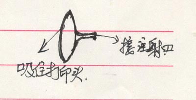 2、有一种橡胶制的吸盘,一侧吸盘吸住打印头,哪一种颜色堵塞,就将吸盘吸住哪一种颜色对应的打印头那个部位。另一侧正好与50毫升注射器的头衔接紧密,然后抽动注射器活塞,要快速抽动,重复几次即可。此方法非常有效。但这种东西目前还没有发现哪里有卖的。
