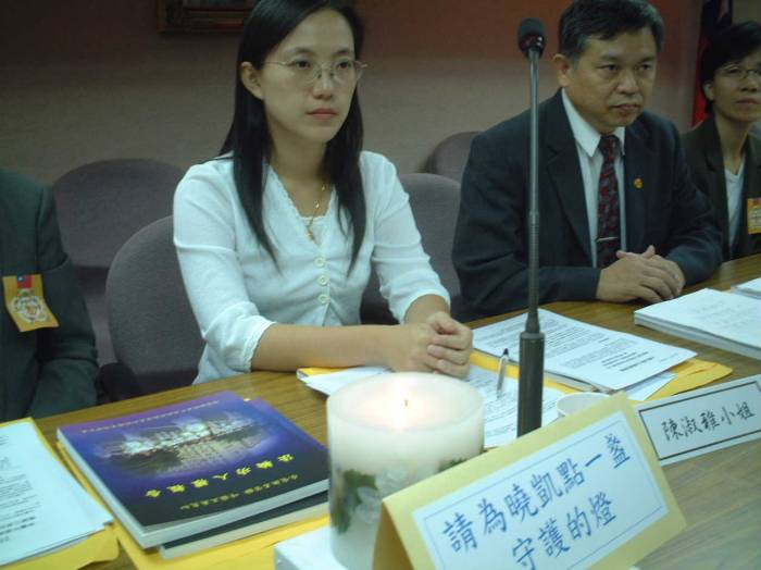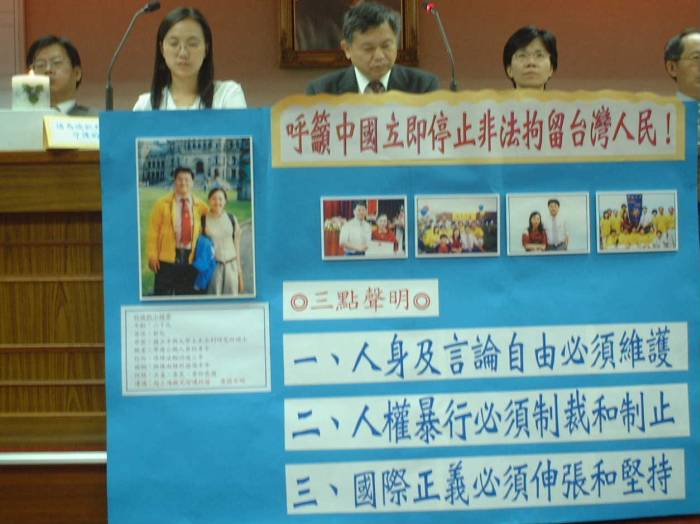 【明慧网二零零三年十月二十三日】二零零三年十月二十一日下午三点,台湾法轮功学员在立法院(The Legislative Yuan)召开记者会,揭露中国上海国安局非法拘留台湾人民林晓凯(Lin XiaoKai),同时指出林晓凯并非单一事件,台湾法轮大法学会并于记者会中发表三点声明。