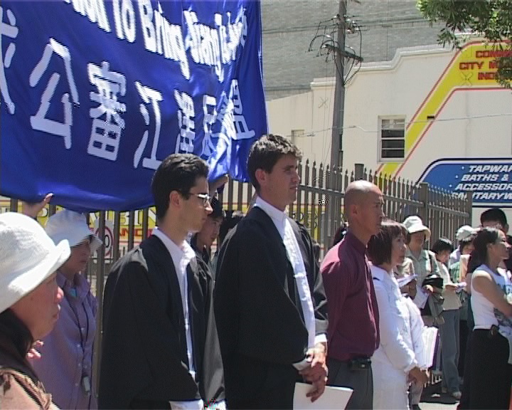 由加盟的民主中国阵线澳洲分部主席秦晋先生在集会上发言说道:“中国在新一轮经济大潮下人心涣散,道德急剧下滑,法轮功的出现是挽救中国人不至于彻底滑向深渊,法轮功修炼人与世无争,只在人间寻得一小块修炼的净土。江泽民设立盖世太保组织610办公室,残酷迫害法轮功修炼者,对他们实行群体灭绝式的镇压。江的倒行逆施不由使人想起古时的江东小霸王孙策,孙策就是迷信手中的权力,残害修炼道人于吉,落得被上天惩罚死于非命的可悲下场,我看江泽民的下场应该与孙策不相上下。”