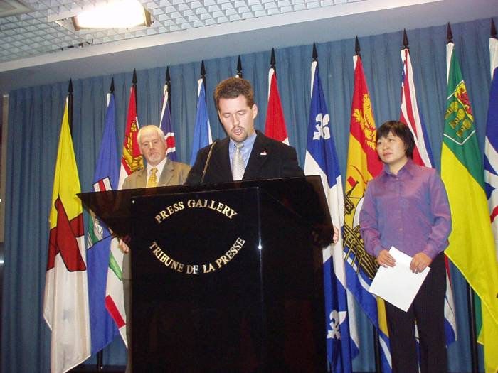 去年10月24日,国会议员瑞德曾提出M236议案,要求加拿大总理克里靖向中国领导人提出释放与加拿大居民和公民有亲属关系的在中国受迫害的法轮功学员,加拿大国会一致通过了这项动议。在这项议案的帮助下,已有4位在国内受迫害的亲属来到加拿大,另外8人被释放。瑞德在今天的新闻发布会上再次公开支持张丽,他说,每一位国会议员,每一位被选举出的联邦官员一致通过,何立志应当被释放,并到加拿大来和妻子团聚。
