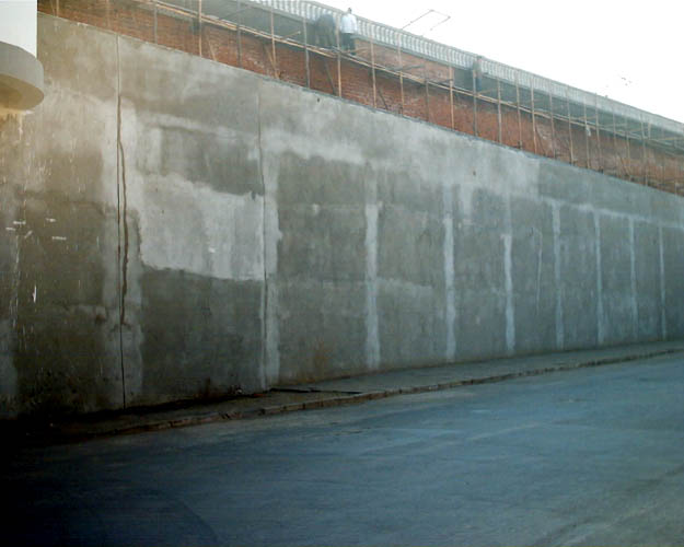 图中监狱围墙水泥尚未完全晾干,晾干的呈浅色,未干的呈深色。