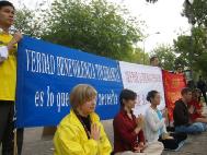 【明慧网二零零三年十月二十五日】西班牙学员在递交起诉江泽民的诉状后的第二天来到中国驻西班牙大使馆门前和平请愿。
