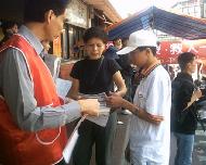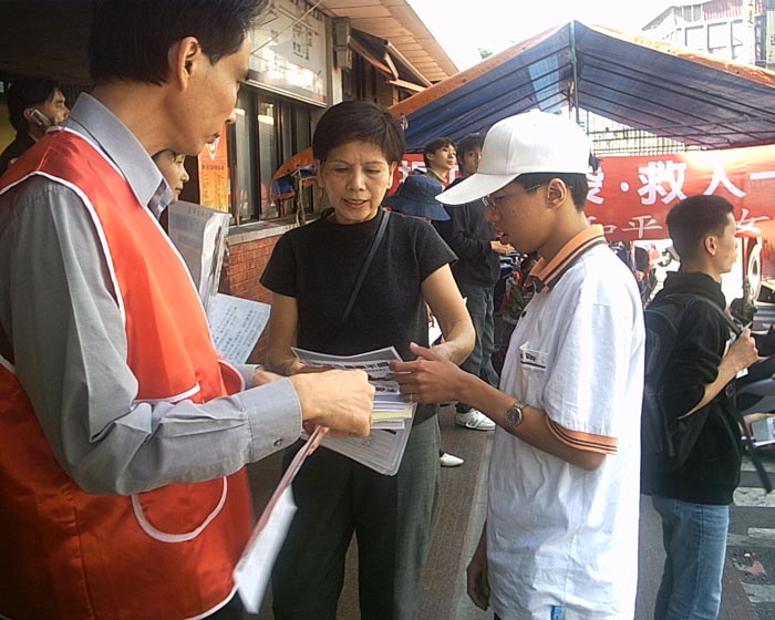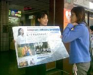 【明慧网2003年10月26日】为了声援被中国政府非法关押的法轮功学员林晓凯,台湾桃园地区的学员在周六上午于虎头山和火车站等地举办了征签活动,也藉此机会向广大民众