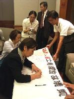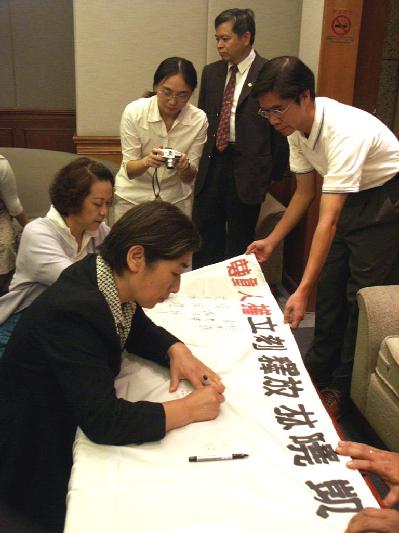 台湾民间对林晓凯的声援也开始发酵,台湾大学及世新大学两校的法轮功社团代表,今天到记者会现场向林晓凯家人致意,并致赠连日来在校园中所获得的人权征签。