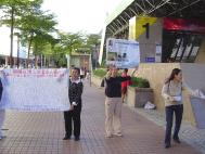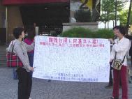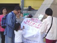 适逢假日,逛街人潮众多,法轮功学员手持征签布条及看板,向过往的行人派发真相传单,并与民众说明此征签的意义,许多民众对此事件已有一初步了解,支持度很高,有人一看是法轮功,立即主动签名,表达对中国迫害法轮功此一行为的不满。连国小的学童也加入签名的行列,一位小女孩用着童稚及真诚的声音对着学员说:「希望他(林晓凯)能早日回来。」