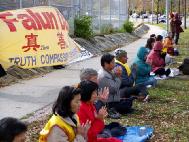 中国吉林监狱有一百多名法轮功学员为了抗议监狱的残酷迫害,展开绝食抗议活动,星期一(27日)晚,近百名法轮功学员于纽约中国领事馆前声援,呼吁中国政府停止镇压法轮功。