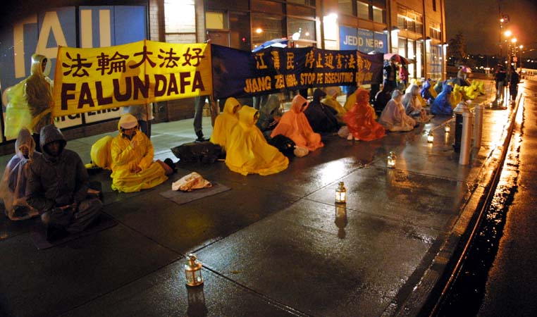 这次静坐活动,虽然下着冰冷的雨,仍然聚集了近百名法轮功学员,法轮功学员举行烛光夜祷,他们最大的愿望就是中国政府早日停止迫害法轮功。携幼子在风雨中参加此次活动的法轮功学员张女士表示:“看到中国大陆这么功友受到残酷的迫害,我们想要出来声援,跟国内的学员比起来,我们受这些风雨根本不算什么。”