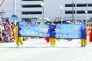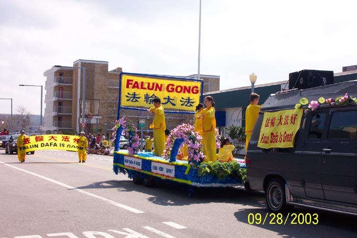 法轮功学员也参加了这次游行活动。我们在几个月前申请参加游行的时候,已到申请截止日的最后一天,当组织者看过以前法轮功学员参加别处游行的相片时,非常惊喜,称赞不已,热情欢迎我们参加。在离游行仅有一个月的时候,我们又临时提出加入花车表演, 组织者听说后,出于对法轮功的了解,非常爽快地同意了我们的要求。