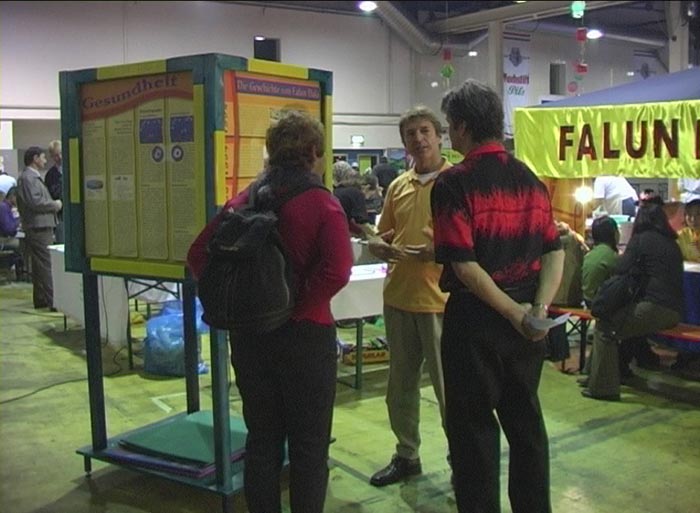 晚会中间休息期间,有不少来宾找到我们的展台,称赞我们的节目优美感人,并向我们进一步了解法轮功真相。还有几位有缘人在详细了解了法轮功到底是什么后表示想学功。