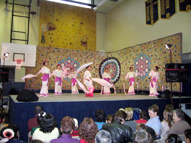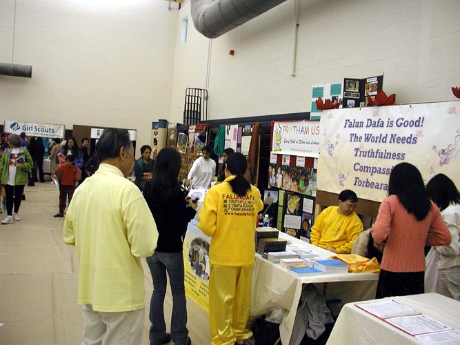【明慧网2003年11月12日】(明慧记者曾洪德州报道) 一年一度的达拉斯国际节是北德州地区最大的展示各国传统文化的盛会。今年的国际节于11月8至9日在达拉斯的圣-马克学校举行,两天的活动吸引了来自各个国家的人们前来观看,浏览的人流川流不息。在几个大厅内分别设有“国际舞台”、“美国舞台”、“儿童舞台”来展示各国的传统的有特色的文化。达拉斯的法轮功学员除了申请了在大厅内展位来播放法轮功教功录像、派发真相材料外,还有两个节目在“国际舞台”上表演。