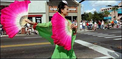 【明慧网2003年11月12日】11月7日,佛罗里达州的法轮功学员参加了位于Gainesville的佛罗里达大学“返校节”庆祝活动。佛大校报及当地最大的报纸均以醒目的图片显著报导了游行中的法轮功学员。