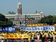 台湾万名法轮功学员总统府前声援状告江泽民 四党一派立委支持(图)