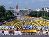 世界日报15日报道说,近万名台湾法轮功学员与各界代表上午齐聚总统府前凯达格兰大道,斥责前大陆国家主席江泽民为人权恶棍,并发表「人权恶棍应受法律制裁」的宣言,声援遭大陆迫害的法轮成员。