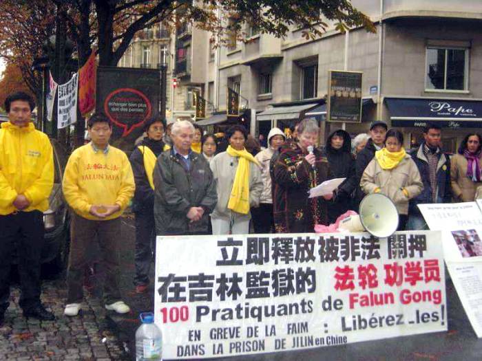 法国学员中使馆前集会 声援吉林监狱被迫害同修(图)