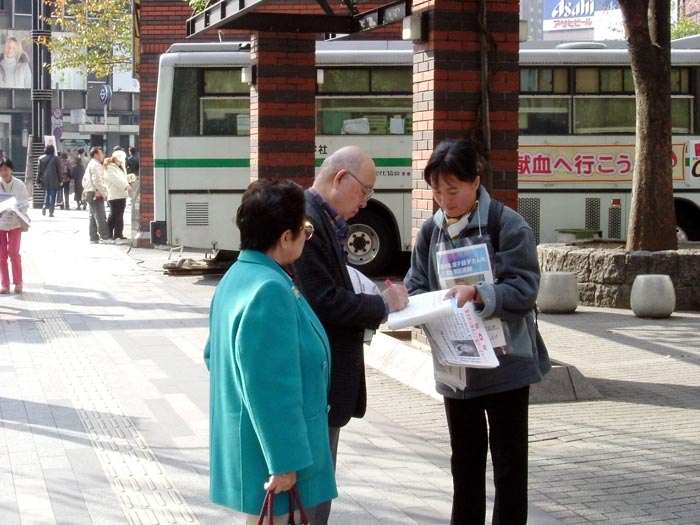 很多来往行人停住脚步倾听,接过传单阅读,在签名簿上签字,有的听说大家都是义务参加救援活动的,一定要捐钱帮助救援活动的展开。多家电视台、报纸前来采访。