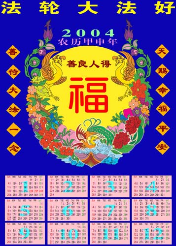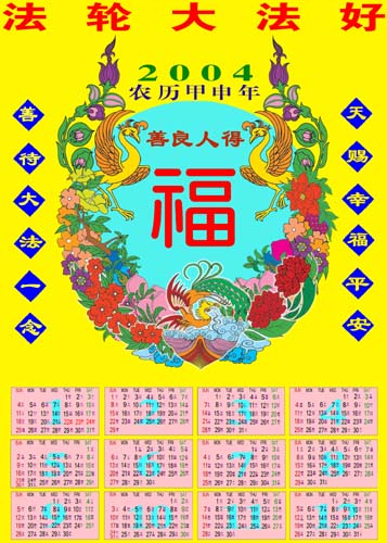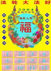 【明慧网2003年11月22日】年历色彩鲜艳喜庆,适合发给农村百姓。