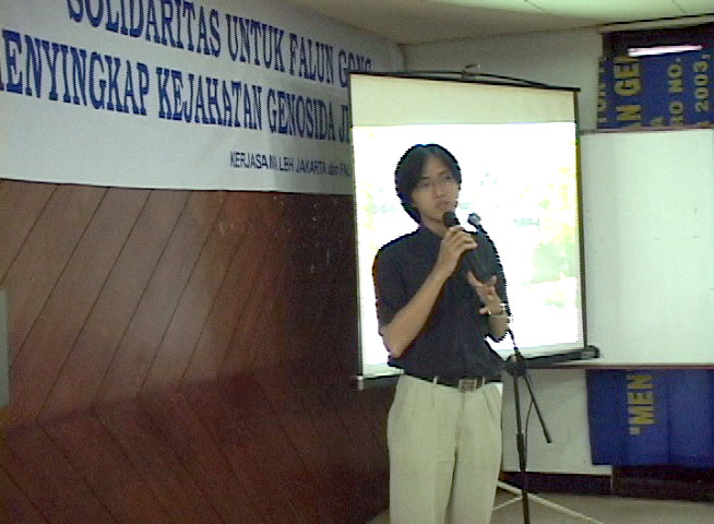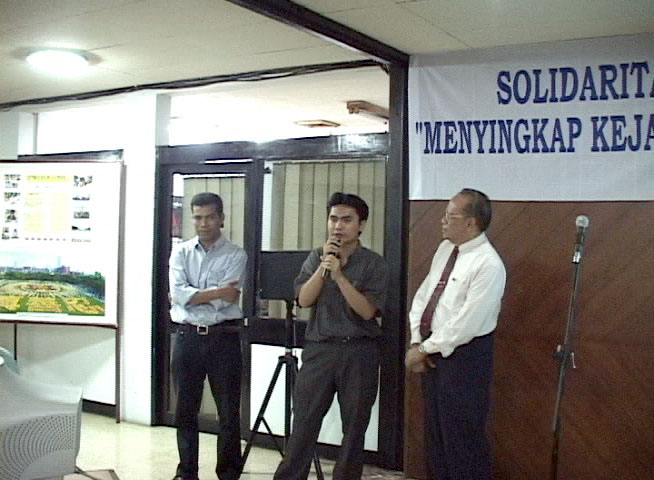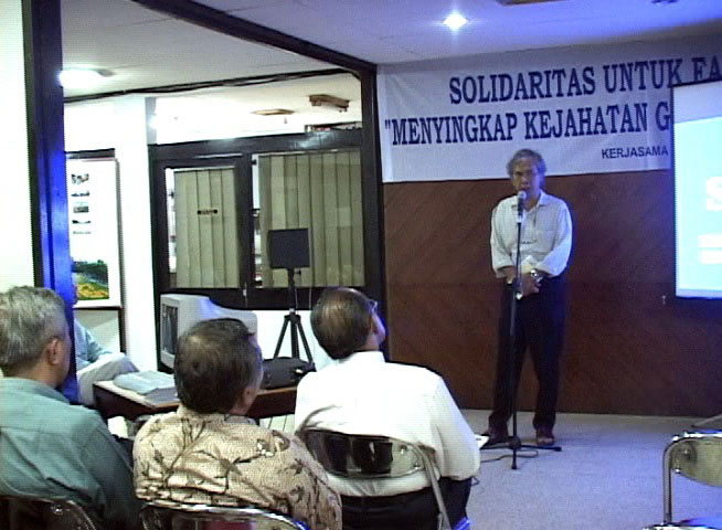 | 前任国家人权委员会秘书长纳巴班观看了影片后说,为争取中国停止扣押和虐待监狱中非法关押的法轮功人士。必须采用国际舆论,透过法律将主谋首脑以及爪牙绳之于法。 | 印尼法轮功和法律协助机构在雅加达联合举办[揭露江泽民群体灭绝罪行]为主体的说明会 | 多个民运团体声援法轮功并筹划成立「印尼声援法轮功联盟」 |