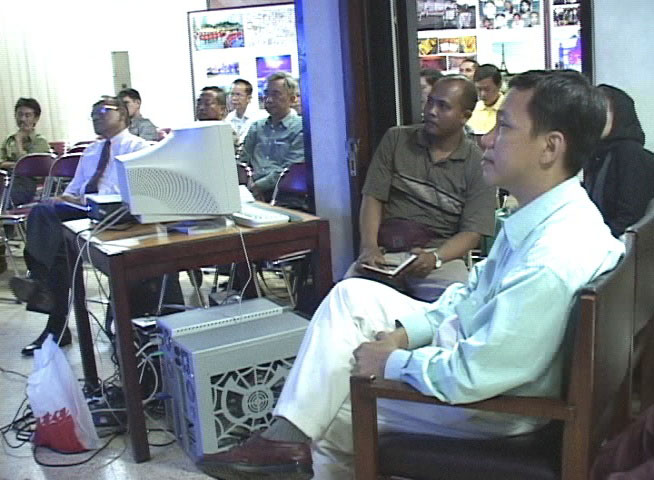 | 播放了影片-介绍法轮功在中国的和平发展、在世界的洪传和得到的褒奖,以及在印尼的法轮功情况。 | 数十位来自雅加达和泗水的法轮功学员和多个民运团体及基督教等宗教团体的神职人员、当地媒体参加了会议。 | 会场上展示了大量法轮功在中国被残酷迫害的图片资料 |