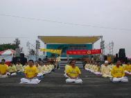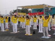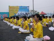 今天的天气本是阴天下着细雨,约150位同修参与盛会,在会场中发正念及演示功法。在演示功法时,一直清凉、无雨直至同修离开会场才下起雨来。整个洪法活动很圆满。