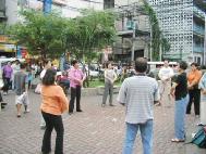 七月我们再度到菲律宾弘法,在一公园设炼功点,白天去观光景点发简介,往来的人很多,我放DVD,要学的人就马上教,吸引很多人围观。