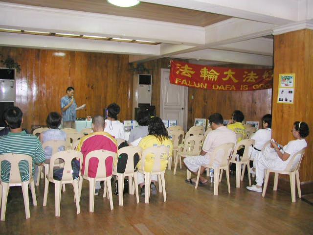 悟到要讲清真相,当地学员积极办理,约好时间到人权协会讲清真相。我们一路发正念,一进会议室每个座位上都有麦克风,人权协会来了五个人,每个都做笔记,可见他们十分重视,我放DVD给他们看,原本他们都不知为何法轮功在大陆被打压,看完都明白了,每位学员都发言讲心得,大法在大陆被污蔑、自焚伪案、香港23条法案等真相,我说我修炼法轮大法身心受益,心怀真善忍,自掏腰包从台湾来,还有的同修是请假来的,想让这里善良的有缘人也身心健康,完全义务教功、不收一毛钱,却无缘无故被流氓破坏,他们表示以后再有这样的事发生马上报告就处理,菲律宾是自由民主的国家,绝不容许妨碍人权的事件发生。最后我们合唱法轮大法好这首歌,感谢他们的支持,在他们的要求下我们展示功法,他们纷纷表示太美好了,好喜欢、很想学。我悟到邪恶集团越迫害我们,我们就趁机揭露邪恶讲清真相,目的就是让众生明白真相获得救度。讲清真相中我们的真、我们的善、我们的忍,就能打动他们的心。