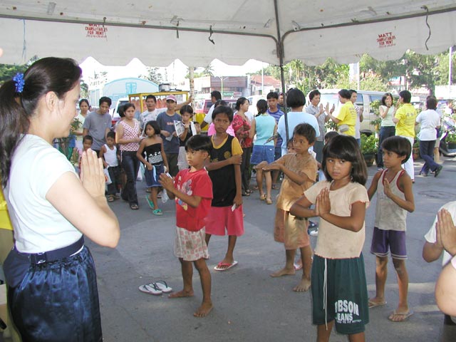 菲律宾太阳好大,我们整天在外弘法炼功和教功,皮肤晒的很痛,有时坐很远的车,这样炎热的天气奔波下,根本没胃口,吃不下东西,每天晚上都学法,但超常的是从没有同修喊累,反而个个精神奕奕,给当地接触过的人留下美好的印象。