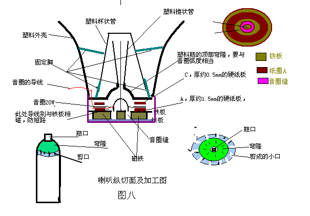 五)自制广播喇叭,如图八。