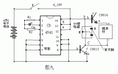 六)定时器:如图九。用CD4541定时(网上已有介绍),用途广泛,价格低效果好。其定时成立条件为: