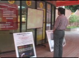 一旦有外边参观或其它劳教司法系统参观,便把坚持说真话的大法弟子派去看录像(都是洗脑录像)找一些犹大或吸毒犯人进行采访(都是些编好的假话和谎话)。