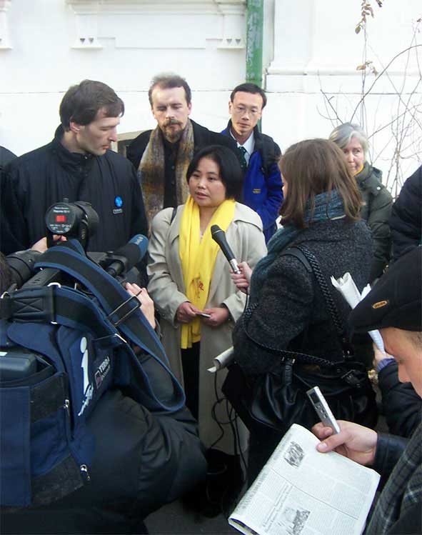 | 新闻发布会现场 | 法轮功学员游行,呼吁结束迫害 | |