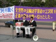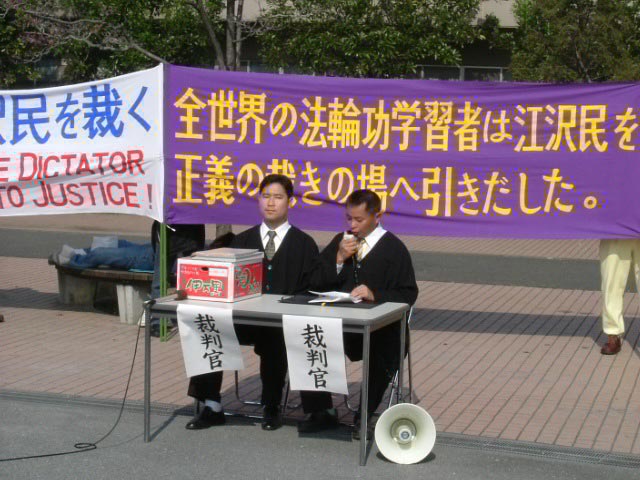 11月2日早上来自亚洲各地的学员在东京芝公园集体炼功后,上午10点,举行了审判江泽民的集会。国际裁判所的一位成员也发了言,对诉江问题表示了关注。