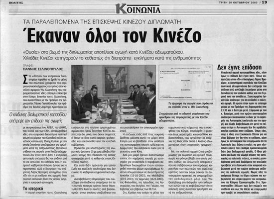 塞浦路斯“政治报”记者约翰-西林诺波罗斯(John Selinopoulos)在这篇报道中说,诉吴案是中国人民为营救中国法轮功学员付出众多努力的一部份,这些人包括在中国有亲属或本身遭到中共(江氏政权)残酷对待以及监禁的中国人。本案系有关支持遭到中共江氏政权明文禁止的修炼功法(法轮功),法轮功包括的修炼生活准则及其为中国文化的一部份,未获掌有实权的共产党的认同。