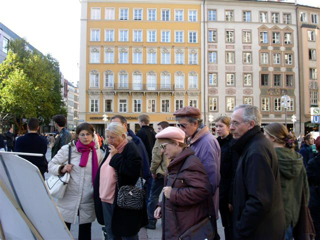 【明慧网2003年11月7日】11月3日至5日,我们在慕尼黑市中心的玛利亚广场举行街头图片展,曝光江泽民法轮功的“反人类”和“群体灭绝”罪行。