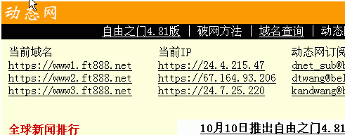 0 订阅动态网 --- 给以下任意一个邮箱发一个电子邮件,就能每一两周收到动态网技术更新,掌握最新突破网络封锁的办法。 dnet_sub@bellsouth.net dtwang@bellsouth.net kandwang@bellsouth.net