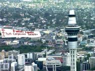 新西兰圣诞游行 飞机拖曳巨幅真象旗帜(图)