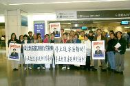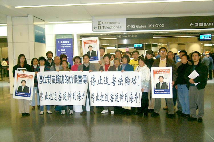 曾勇说,我们今天来到旧金山机场举行新闻发布会,我们要让王云翔知道,他继续执行江氏集团把对法轮功的迫害延伸到海外的政策是错误的,同时,我们还要让新的总领事知道,所有中国在海外的外交官都必须清楚,迫害法轮功是不能容许的。正如美国国会议员提交众议院表决的304号决议中要求的,中国政府应该立即停止在美国干涉人们行使美国宪法所保障的宗教、信仰自由的权利,包括修炼法轮功的权利;停止利用外交使节在美国散布歪曲法轮功本质的谎言。针对王云翔在电视台上诽谤法轮功,我们保留采取法律行动的权利。
