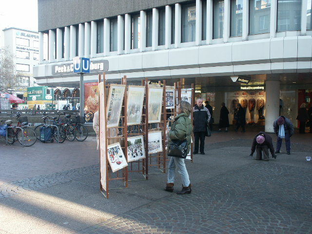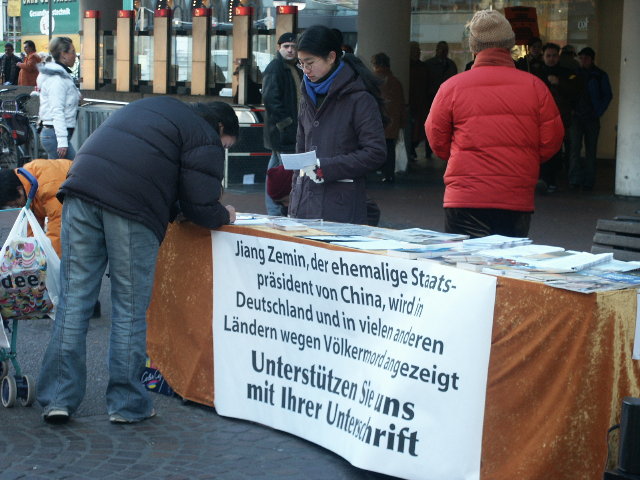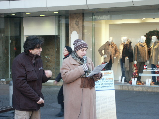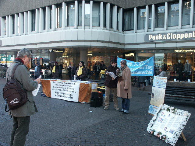 前一天,一个广播电台的记者采访了一位汉诺威法轮功修炼者,从而使公众了解到熊伟在中国被关押的情况。12月10日广播中播出了这段采访,也提到了我们今天的活动,所以我们的展位前来了很多人。许多听众特意赶来,为我们签名,并祝我们成功。