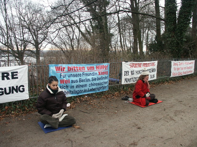 12月8日,即熊伟生日那天,汉堡的法轮功学员再次来到汉堡中国领事馆前发正念,并呼吁大陆当局释放熊伟。