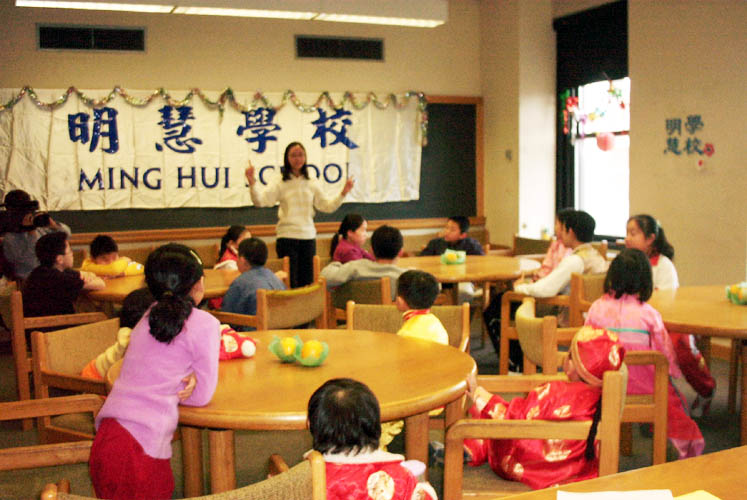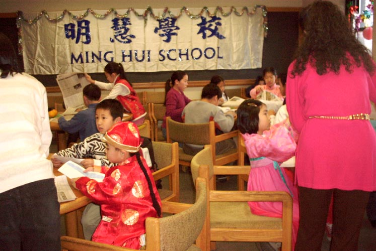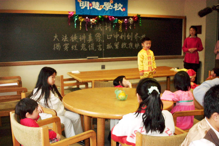 纽约、新泽西明慧学校曾在今年合办两次夏令营活动,家长及孩子们反映非常好,也使两地的小学员们增进了友谊。在新年之际,两校再次决定合办迎新年,讲真相的活动。孩子们身着鲜艳的节日服装,相互问候。教室内五彩的丝带,丰盛的食品,洋溢着一派节日的气氛。