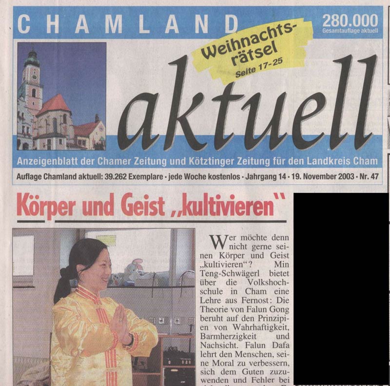于是我重新联络组织起我们卡姆市的炼功组。接着去了市政府,向有关部门提出申请,要求能给卡姆市的法轮功小组提供一个炼功场所。同时送上了关于给政府官员了解法轮功以及在中国遭受严酷迫害的资料。政府官员虽然没有能直接提供炼功场地,但是向我推荐找大众高校。