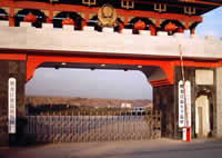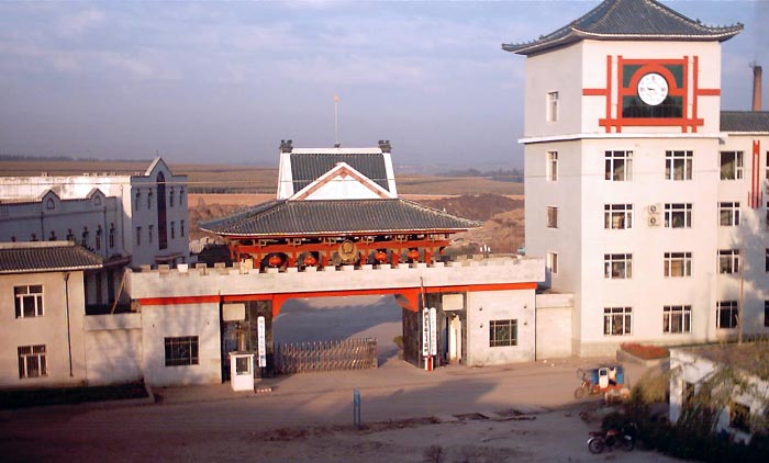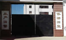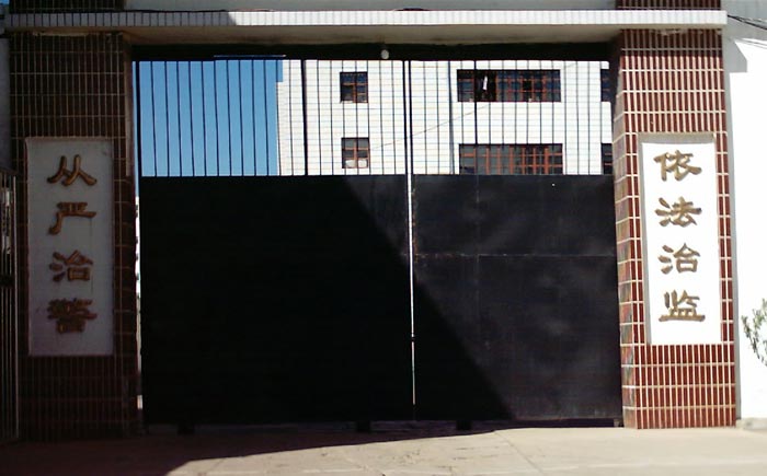 监狱正门的左侧标牌为“黑龙江省蓝盾服装厂”,右侧标牌为“黑龙江省女子监狱”、“中共黑龙江省女子监狱委员会”。