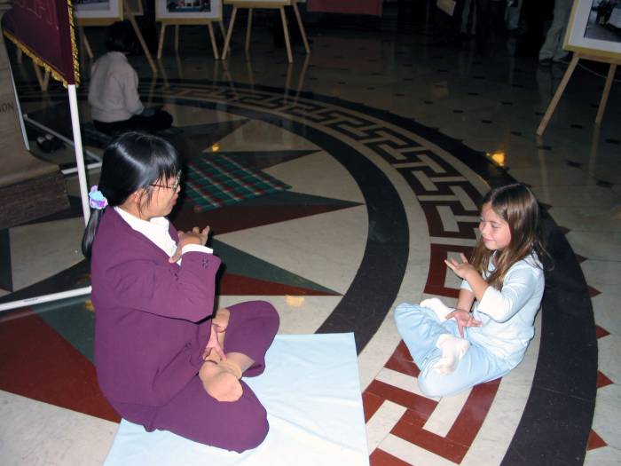 从2001年起,每年伊利诺依州大法学员在议会期间举办数次讲真相活动。越来越多的议员及议员的助手,和在州府的工作人员通过我们的活动了解了大法。这次一些议员路过大厅时前来向学员问候。有几位工作人员还特意利用午休期间跟学员学了五套功法。大法学员们将会继续利用州议会期间在州府大厅举办活动,因为这是难得的与政府官员和议员们面谈和向他们展现大法美好、讲清迫害真相和呼吁正义支持的好机会。