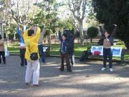 教功结束后,大法学员们又向学功的人们介绍了法轮功的基本修炼原理及“真善忍”宇宙特性,并向他们述说了中国大法弟子仅仅因为要求自由炼功而遭受到的惨无人道的迫害。在震惊之余,人们对大法弟子的勇气和坚持不懈的精神表示赞叹。