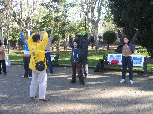在前来学功人中有两位是萨拉曼卡大学广播电台的记者,他们在亲身体验法轮功功法及了解了迫害真相之后对学员进行了采访,并表示他们会将真相告诉更多的人。