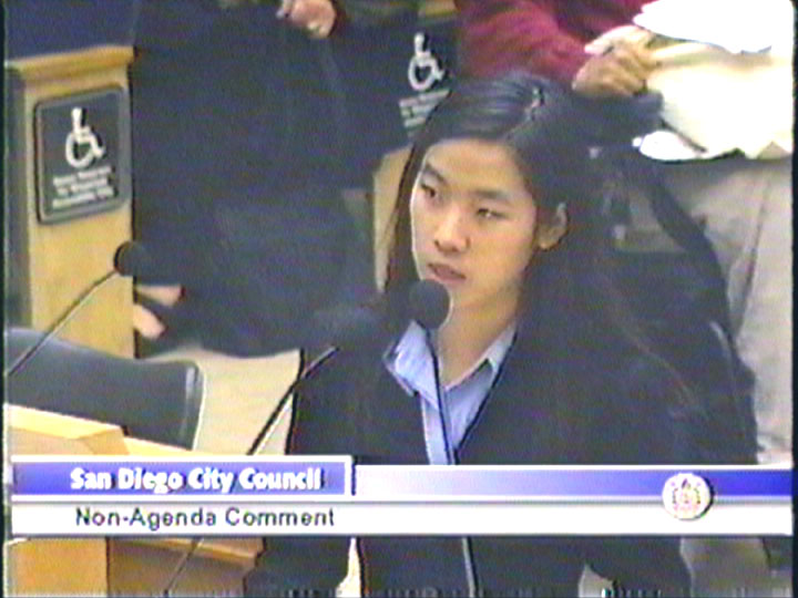 符泳青说据她所知,自从镇压以来,圣地亚哥市已有两个美国公民在中国被关押与迫害。符咏清呼吁市会议一起来反对这场镇压,因为这场迫害正在波及我们每一个人,这不只是中国的内部问题。每一个善良人的呼声都会起到停止这场迫害的作用。