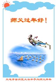 我们是辽宁大法弟子,在此新春佳节到来之际,祝师父新年好!请师父放心,我们决不辜负师父的慈悲苦渡,谨记师父谆谆教诲,用弟子的正念正行圆满自己的史前洪愿!