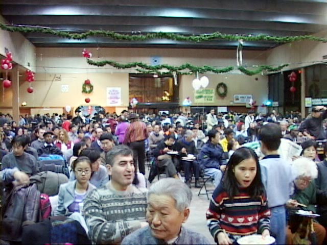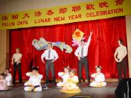 法轮大法学员与各界人士春节联欢活动最初开始于2000年春节前夕,当时有400多人参加,到今年2003年已经颇具规模。晚会是自由参加,免费入场,除了由法轮功学员表演的精彩喜庆的节目外,还备有丰盛的晚餐。菜式丰富,大约有250道菜,几乎全是由来自中国大陆、香港及台湾的多伦多法轮功学员亲手制作。