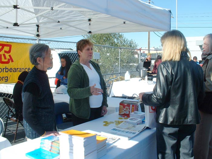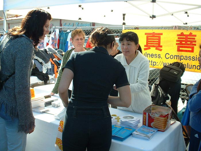 一位中年白人男子径直走到我们摊位跟我们说:“我在报纸上看到关于你们法轮功的报道,我真佩服你们,中国政府[江XX集团]就是怕民众不听他的,但是他越这样搞,我越觉得法轮功好,凡是XX党说不好的到最后都是好的。”