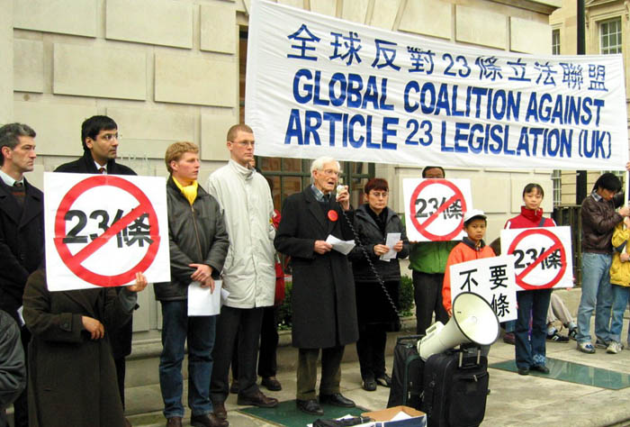 根据基本法23条而提出的立法草案,任何以危害国家安全原则在大陆被禁的团体,都将在香港被取缔。根据香港本地的法律规定,禁止任何团体都不得不经过香港的法院的裁决。但不幸的是,自从去年夏天的对和平的香港(法轮功)请愿者进行的一场荒唐及不公正的审判和判决,使得来自官方操控、迫于北京压力的香港司法公正与独立本身已受到威胁,世界在等候向高级法院上诉的结果。